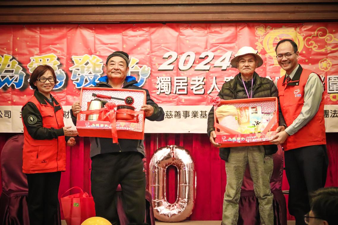 當天,台灣電力公司公眾服務處處長袁梅玲及一粒麥子基金會執行長林木泉把今年的溫馨關懷禮送給三百六十位長輩,由皆為六十九歲的牙阿公及謝阿公代表接受。
