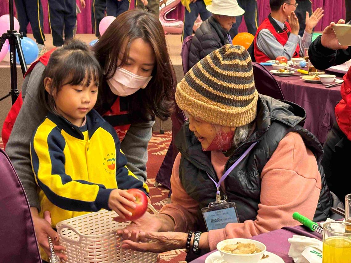 今年的圍爐餐會上,除了有精彩的表演,還有青荳芽幼兒園小朋友贈送象徵「平安」的蘋果給長輩,讓長輩備感窩心。投影機播放著過往十九年「為愛發光」的回顧影片,一幕幕至大飯店圍爐、大賣場採買年貨、義剪、屋內線路檢測等畫面,帶給長輩溫暖的回憶。