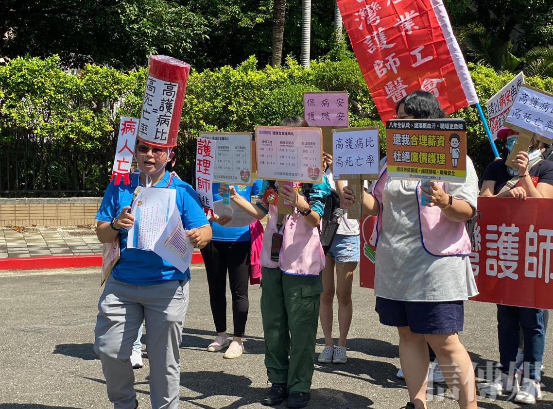 她解釋,護師工會依照問卷調查的結果,合理護病比應該是要1:7、10、12,才能真正降低護病比,這部分就放在第二階段訴求。「全聯會是10、13、15,台醫聯是10、11、13,我們覺得全聯會提得太高了,之前地區就是大於等於15,地區醫院自己提的是13、15、20,這樣平均下來就是1:15,誰會願意做?」