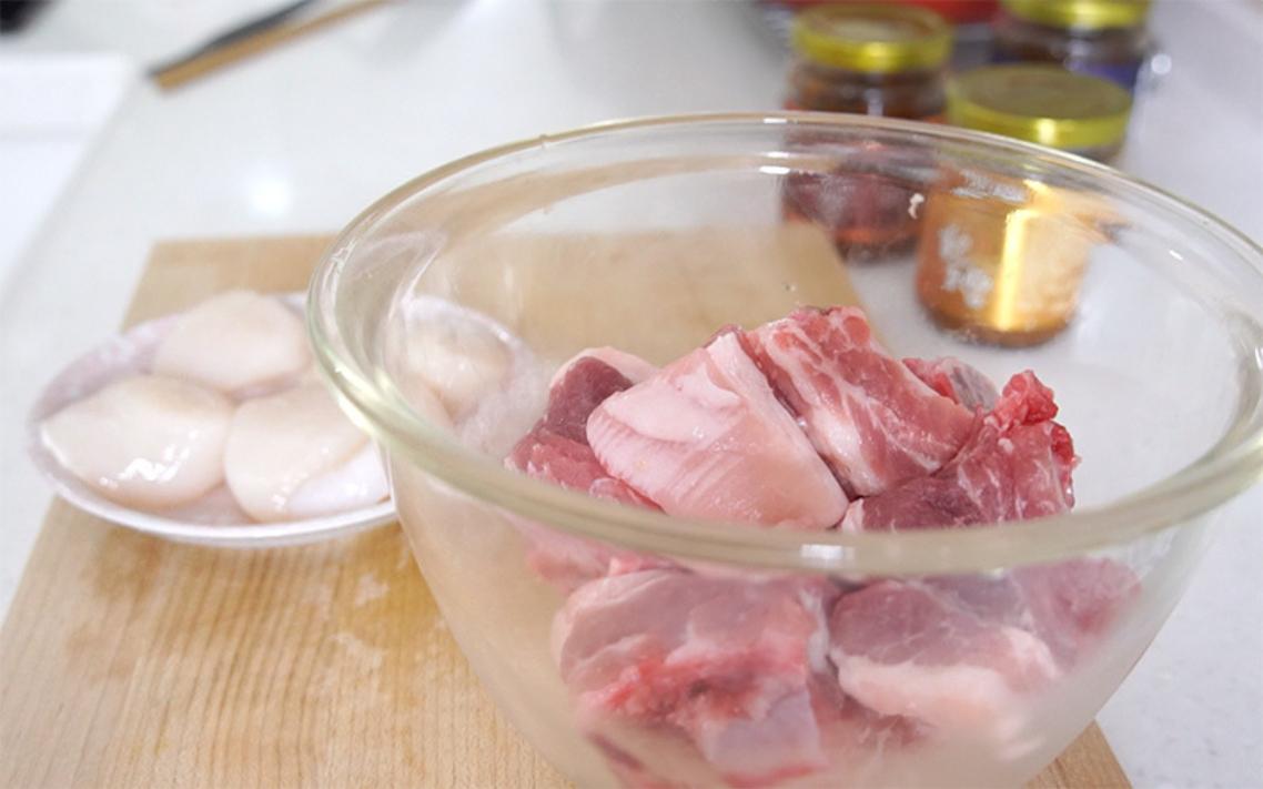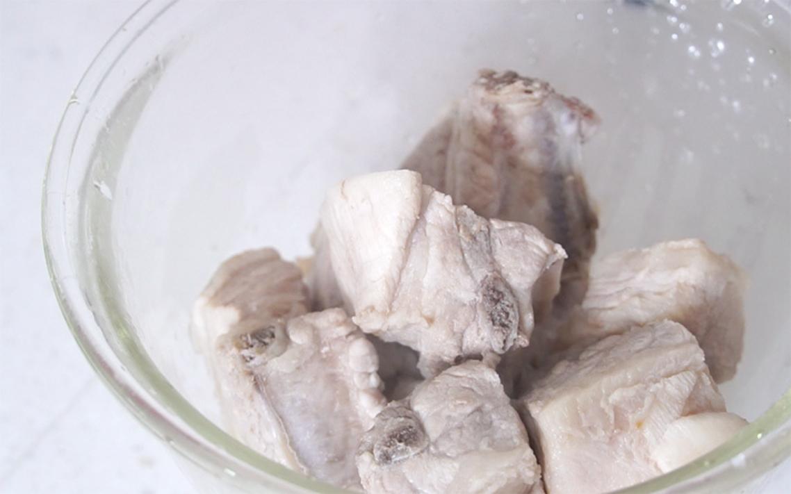 首先將排骨川燙洗淨,川燙至跑雜質,並洗乾淨備用。