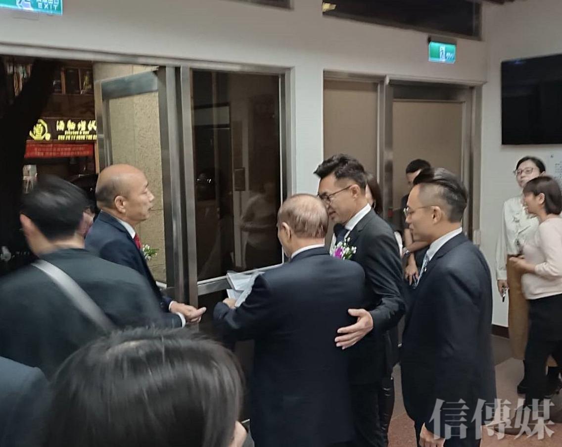 《信傳媒》記者現場直擊,一行人在鎮江會館會晤約30分鐘,於6時31分步出會議室後,韓國瑜、江啟臣、傅崐萁、洪孟楷一路護送王金平至門外,在門口他們還拿出文件交頭接耳討論一番,氣氛非常融洽。