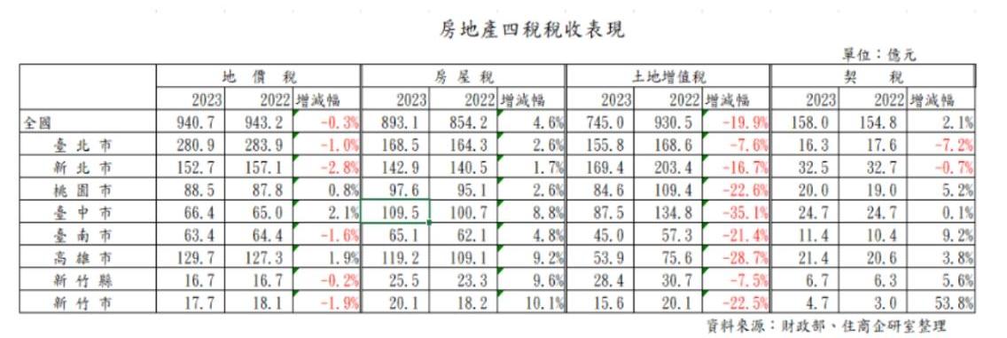住商不動產企劃研究室執行總監徐佳馨指出,2023年房市表現先弱後強,買賣移轉較2022年為低,因此移轉稅大宗的土地增值稅表現不佳,但契稅因不限於買賣,表現不錯。值得注意的是房屋稅表現優於地價稅,推估與地方政府近年調高新屋稅基,並針對多屋族加稅息息相關。