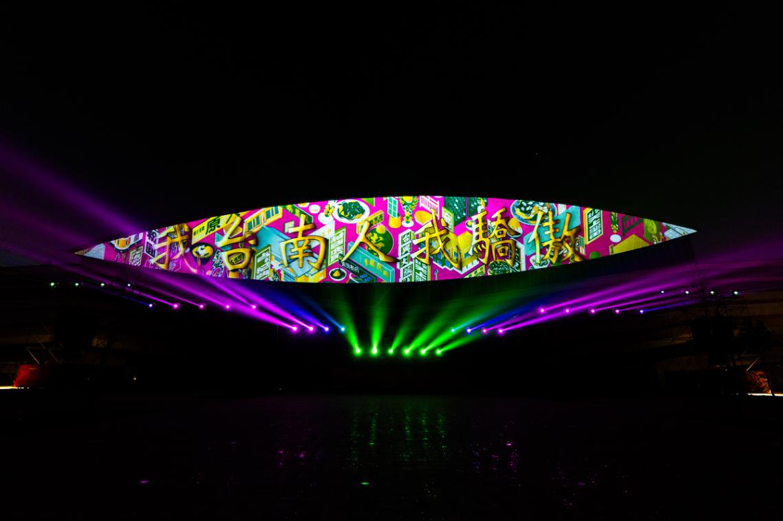 臺南市政府表示:「靈動的目光」作品靈感來自於大臺南會展中心建築上獨特的鯨魚腹造型。將鯨魚腹造型賦予眼睛的意象,透過光雕藝術讓人們透視臺南的百年歷史並展望未來。動畫設計結合臺南豐富的文化資源,取樣陳三火、吳文進、王明賢、黃德勝及潘岳雄等傳統工藝匠師作品,展現臺南「眾神之都」之名;影像則結合臺南在地實力堅強的團隊北澤鋼、白鹿影像、正在動映、插畫家湯士賢、美術設計邱璽民等,將傳統文化與當代潮流融合創造出絢麗作品。