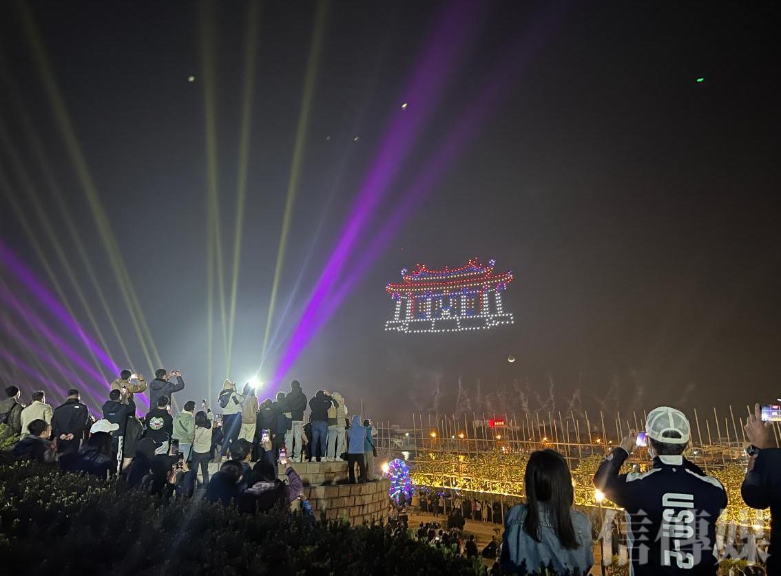 除此之外,安平燈區每逢週末也有加碼無人機表演,每場次共出動500台無人機,搭配燈光雷射、煙火秀在空中表演,讓觀賞的民眾驚呼連連。