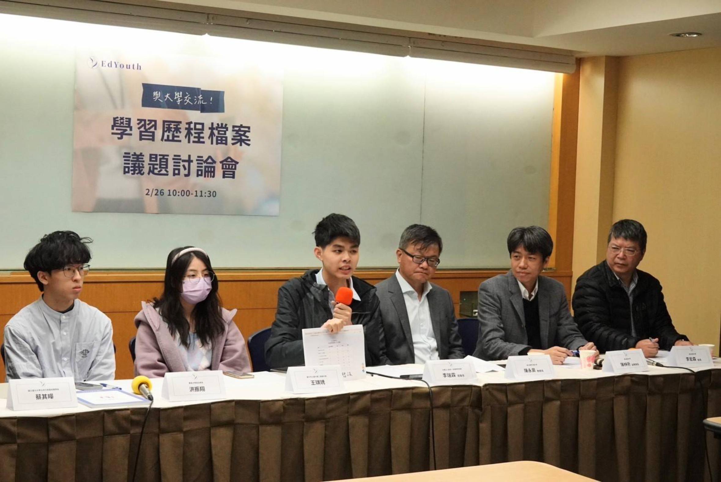 學生團體EdYouth舉行記者會,邀請陽明交大教務長、台大副學務長及註冊組長、大學生代表、高中生代表,呼籲教育部、數發部應重視學習歷程檔案產生商品化、惡性競爭的問題,並指出學生沒有必要為學習歷程檔案參加高額營隊。