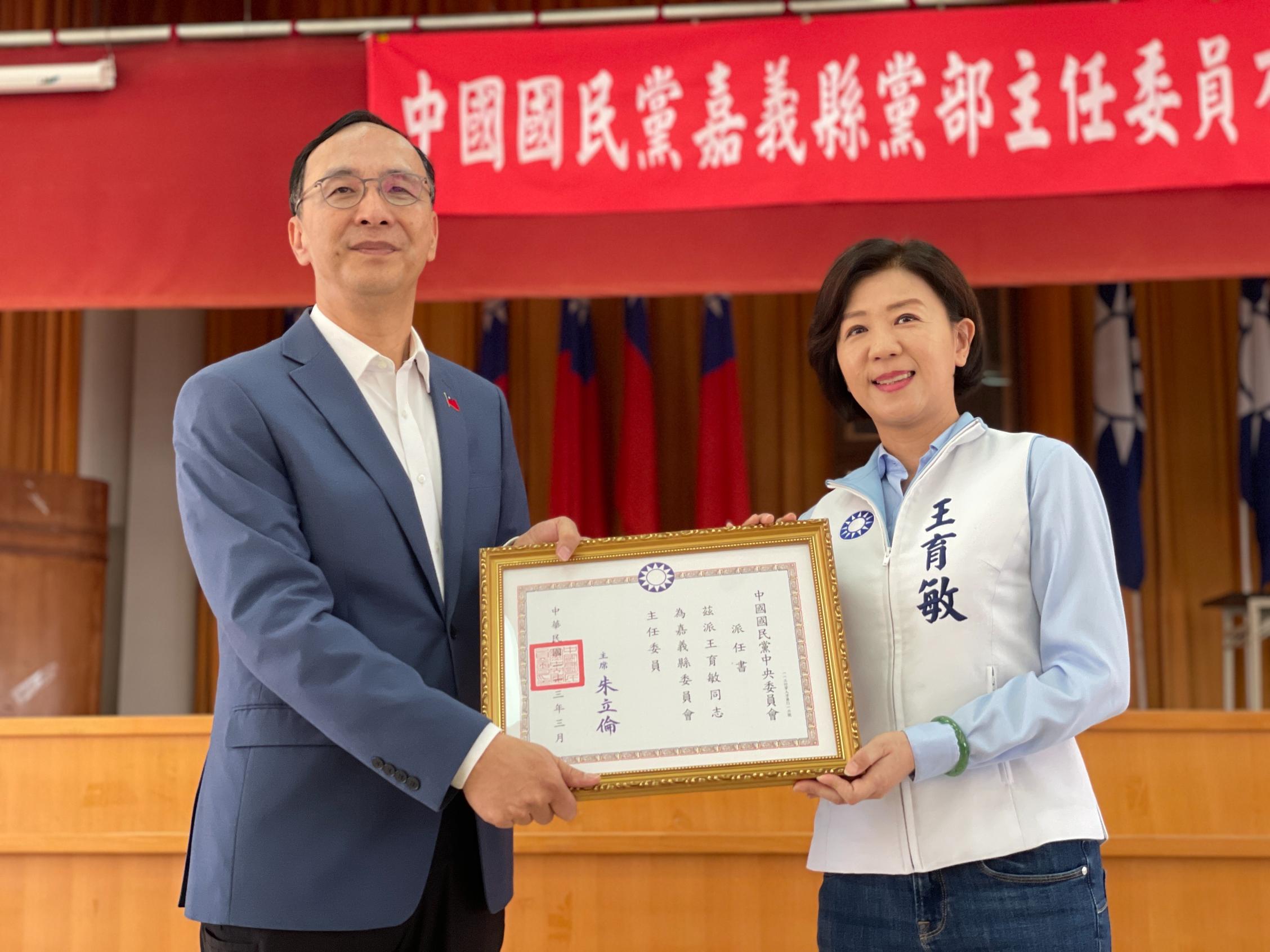 國民黨嘉義縣黨部今(5)舉行新任主委布達典禮暨新春團拜,由國民黨立委王育敏正式接任嘉義縣黨部主委。現場除國民黨主席朱立倫到場見證,國民黨議員、地方民意代表,乃至於無黨籍民意代表到場祝賀,延續國民黨在嘉義縣的「在野大聯盟」策略方向。