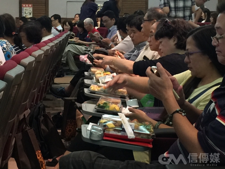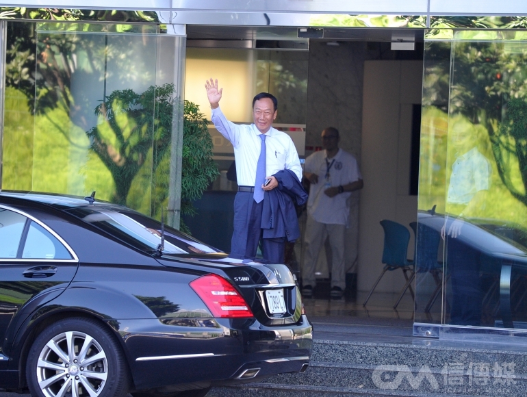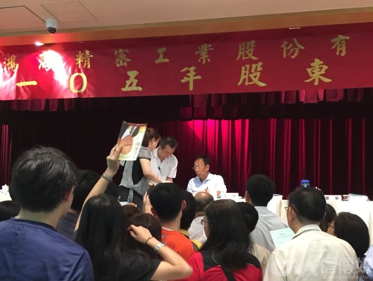 6月22日一大早,鴻海董事長郭台銘(郭董)就到土城總部就定位,準備迎接小股東們的「拷問」。(攝影/林煒凱)