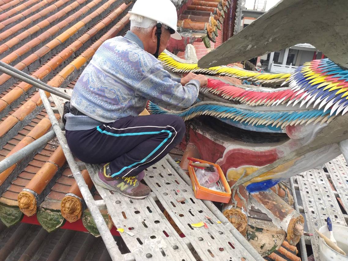 對此,林師傅卻深不以為然,他以剪黏和泥塑為例,早期由於水泥稀缺且昂貴,因此不得不採用石灰攪拌海菜粉製成的黏劑;現在水泥非常普遍且價格便宜,做為黏劑更為牢固,壽命更長。他認為材料的使用也需要因時制宜、因地制宜,不是一昧仿古、仿舊就是好,何況使用水泥一樣也能做出仿舊的效果,古蹟修復也需要與時俱進。