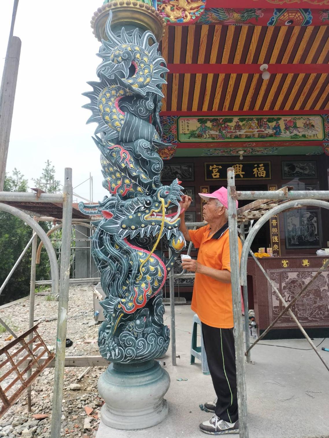 不論剪黏,還是泥塑、彩繪,都需要相當的功底。林電貳不僅精於剪黏工藝,他在泥塑和彩繪方面也是技藝高超,深受各方的肯定。對於一個未曾受過專業美術教育的人來說,能有此造詣,只能說此人深具藝術天分。不過他也建議有志於此者最好還是要有美術功底,做這行要有耐心,不要緊張,慢慢做、慢慢學,慢工才能出細活。