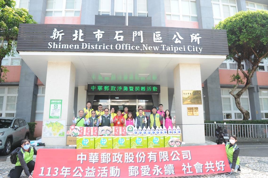 中華郵政公司同日亦攜手石門區公所、北觀風景區及三重郵局辦理物資捐贈活動,由壽險處副處長楊麗芬親臨致贈花東米、洗衣精、衛生紙等民生必需品予石門區公所、華山基金會及新生活促進會等團體,實踐以人為本的企業核心價值,為社會挹注溫暖與正能量。
