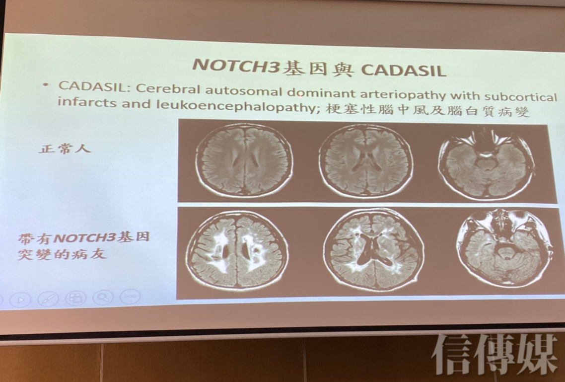 她也提到,目前的研究還發現,如果帶有NOTCH3基因上的R544C突變,把血壓控制好是可以預防的。「不過不管知道有或沒有那個基因型,一樣就是控制三高,雖然還是很多民眾認為,有高血壓但沒有不舒服可以不用吃藥。」