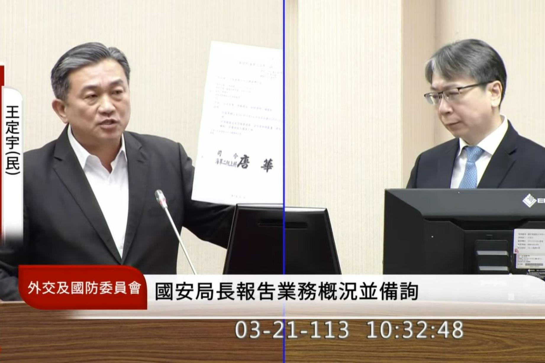 王定宇激動地秀出海軍公文,指出裡面的安全管制計畫書載明,X尾舵沒有列入機密,馬文君拿老一套已經澄清過的烏賊手段,轉移偵辦當中身為洩密叛國的被告,不僅不迴避機敏度高的外交國防委員會,還被國民黨推舉為召委,明明還有陳永康、徐巧芯適合當召委。