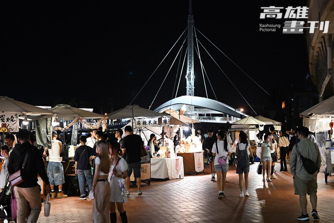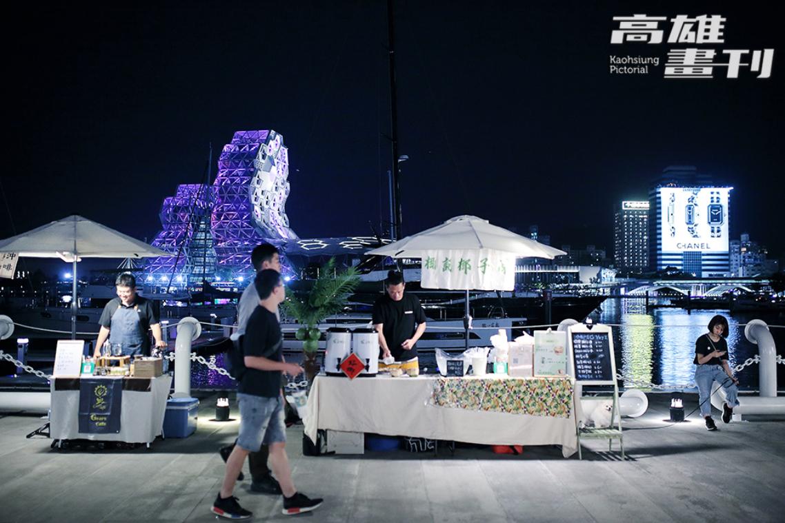 乘著輕軌來到光榮碼頭,映入眼簾是矗立在前的高雄流行音樂中心,前陣子亦剛榮獲臺灣建築獎「都市活力特別獎」,踏進面海的鯨魚堤岸,每週三至日限定的夜間食濱小趕集Spin Market就在這兒,沿著堤岸走路吹著海風,小燈搖曳下,採買著各式小點心,端著飲品享受海灣夜景,相當Chill。