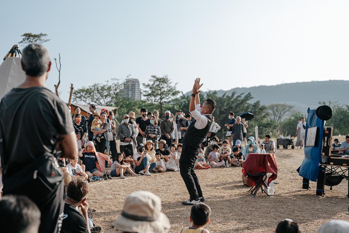 森之市通常從下午開始,時間長達到夜間,並搭配不同表演活動。若想避開太陽日曬,傍晚後來這最適合,只要從輕軌站下車,自在地走入美術館園區,循著步道上小燈泡亮光與表演音樂聲,就能找到森之市所在。