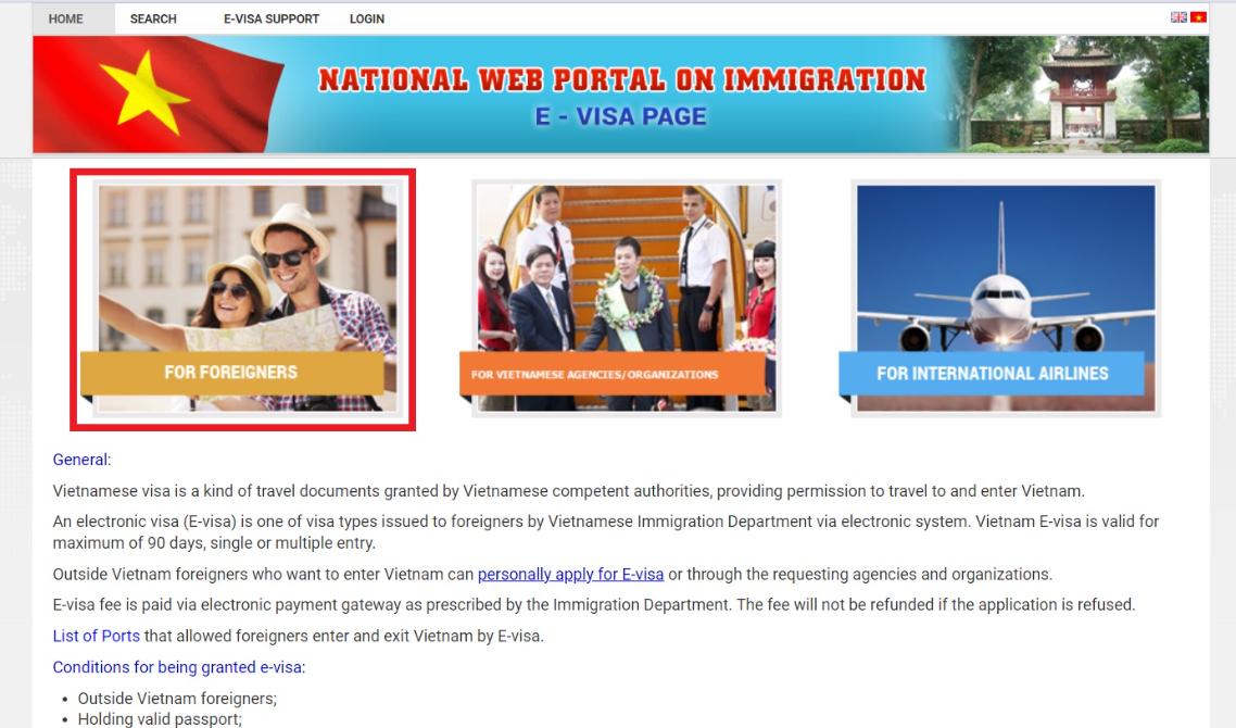 接下來點入越南政府電子簽證官網,點選個別外國人入口網站。