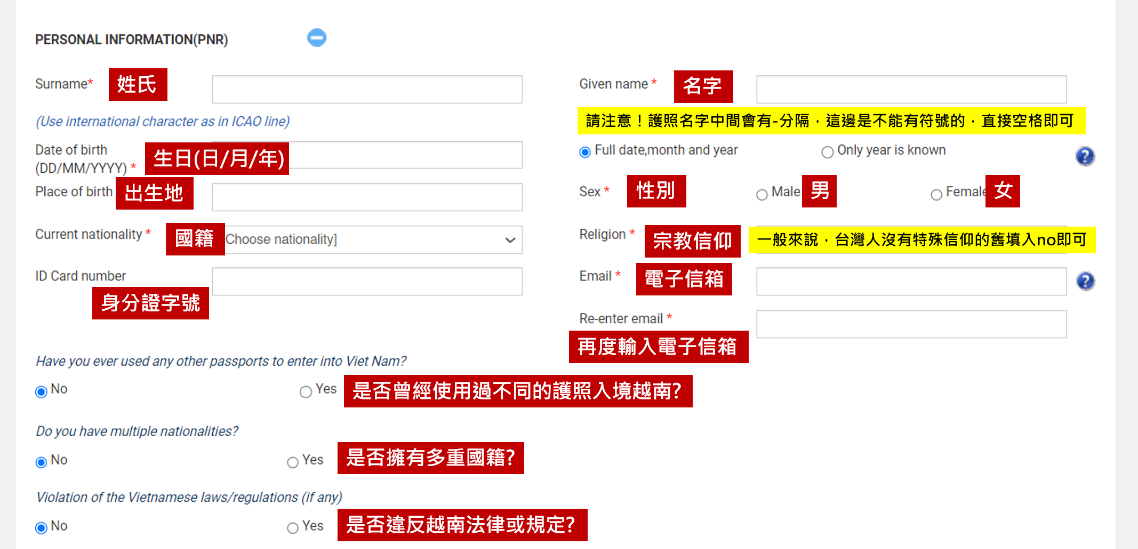 相關資料都完整後,就能進入到越南政府電子簽證網站開始申請電子簽證(這時候最好將本篇文章另開分頁,因為網站內會是全英文,不建議使用google網頁翻譯,因為《信傳媒》小編實際操作過,容易在切換的時候出現填入的資料變成亂碼)。