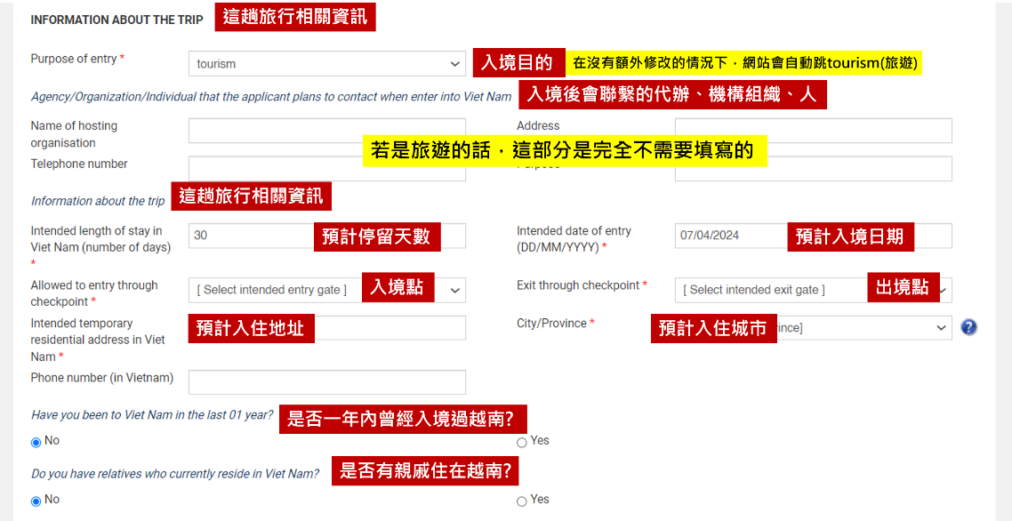 接下來是非常重要的旅行相關資訊,需要仔細填寫。
