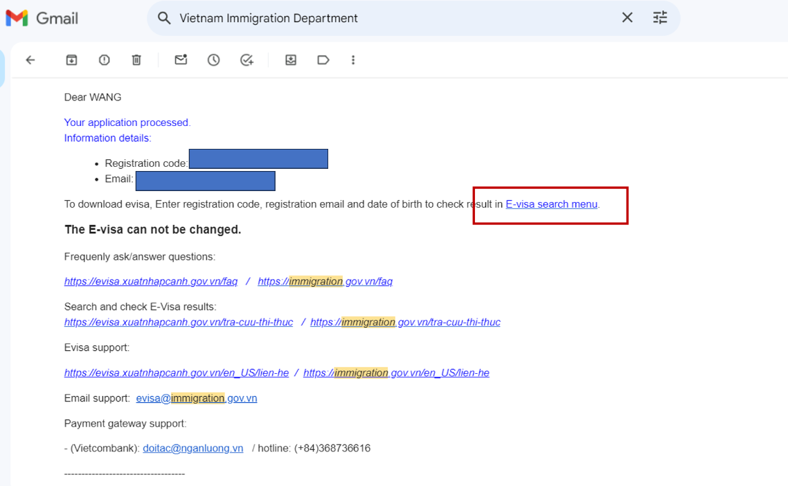 確認正確後送出,送出後會先跳出一個小視窗,雖然說系統同時會發信到 Email 告知申請編號,但建議還是額外截圖存起來,因為上面有一組號碼是之後若需要查詢簽證是否有申請通過會用到的,接著進入付款程序,付款完成後就等待3個工作天,之後會收到Email告知簽證結果(Email示意圖如下)。