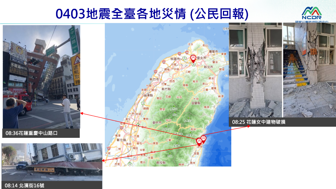 花蓮多處樓房倒塌、落石,全台已知933件災情
