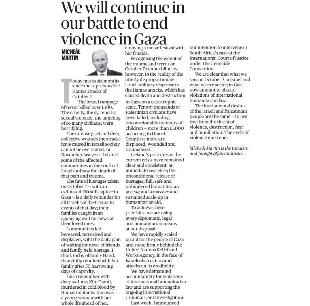 拜登在今天播出的訪談中,罕見且嚴厲的譴責了盟友以色列,認為以色列總理納坦雅胡處理以巴衝突的政策方向是「錯誤」。而愛爾蘭副總理馬丁(Micheál Martin)今天表示,愛爾蘭將會承認巴勒斯坦的國家主權。