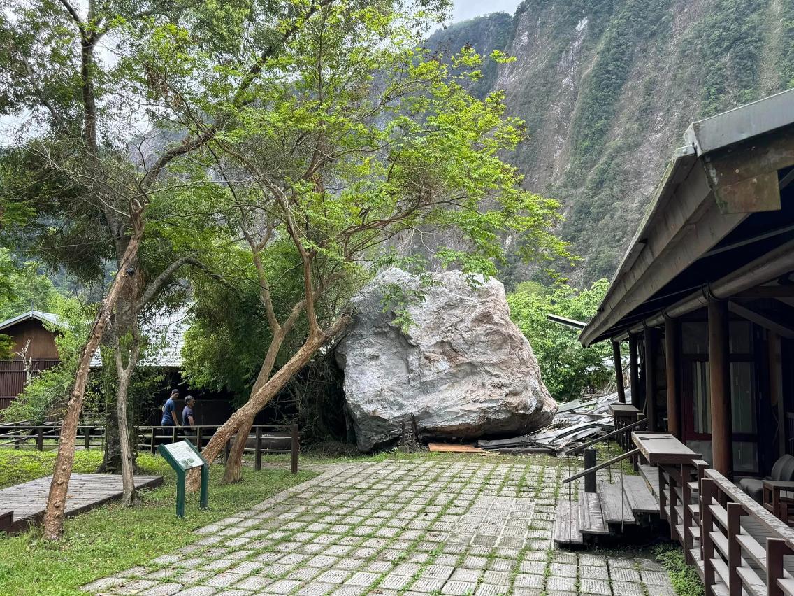 只是大地震還是重創了山月村,包括小木屋、公共衛浴、客房內衛浴石片、冷氣、熱泵、五金加上幾顆超級大巨石,鄭明岡說,算一算這些處理完也半年過去了,合約也已結束。