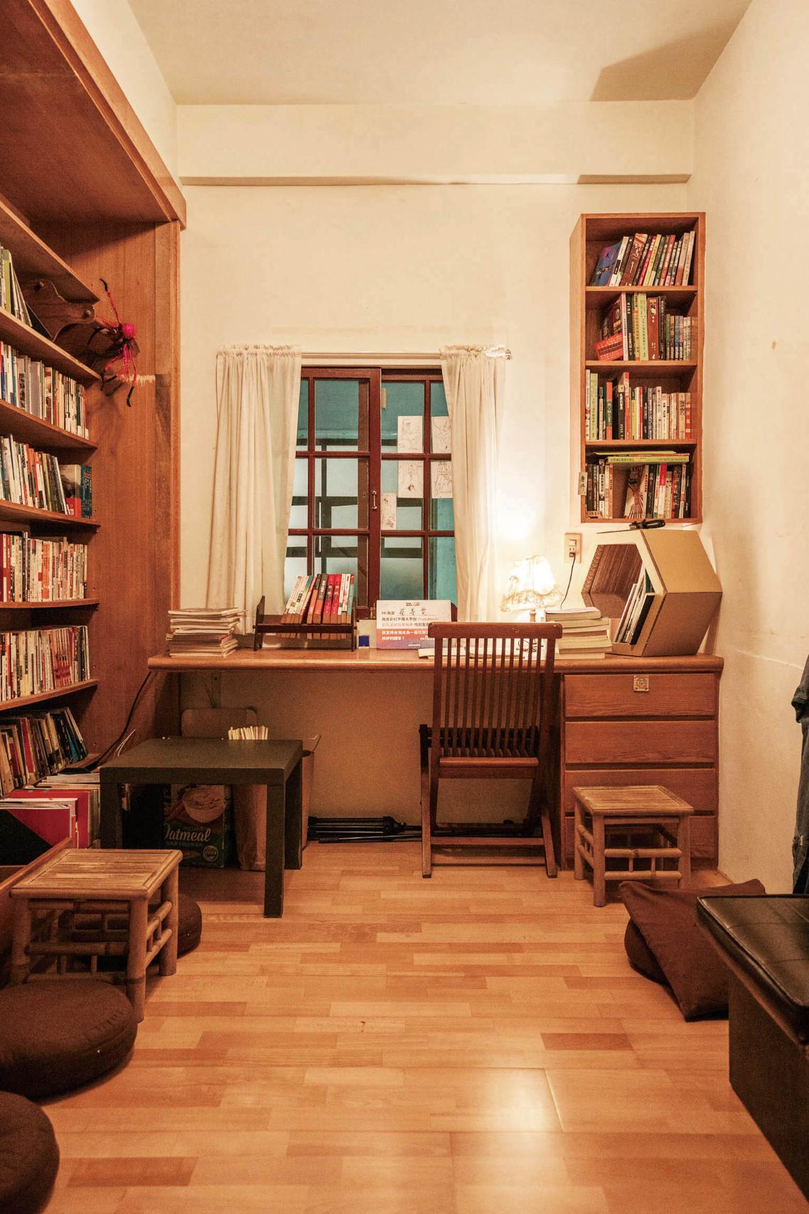 書店隱藏在忠信市場內,復古的氛圍彷彿時光在此凝結。面積約5坪的小小空間,原為房東住所,蔡善雯租下後僅稍作改動,拆除部分裝潢,重新上漆,營造出充滿女性溫柔氣息的環境。