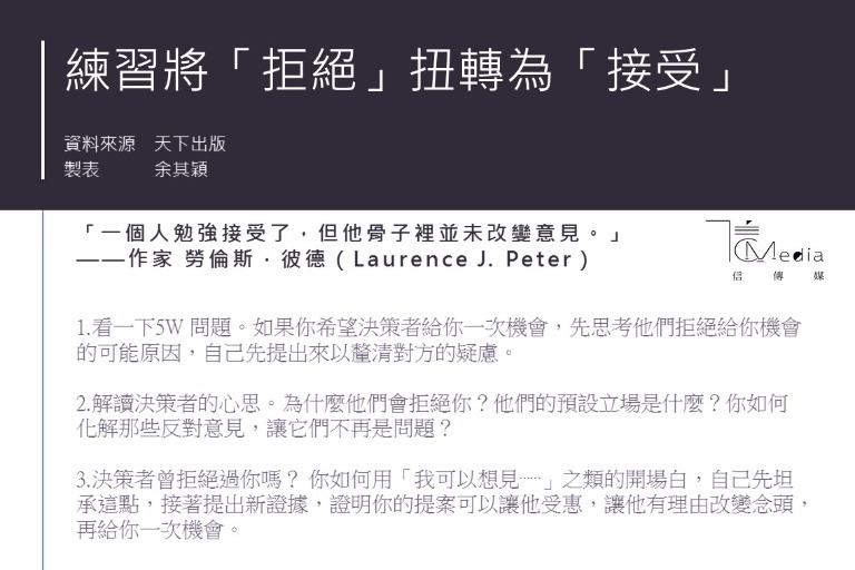 「別讓無權做決定的人拒絕你。」