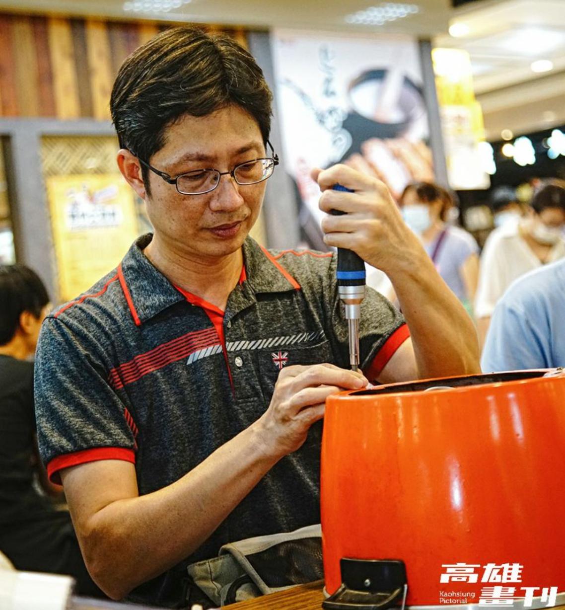 拿著螺絲起子細心打開底座,為小零件汰舊換新,小家電診所召集人黃武就,輕鬆搞定電鍋,拯救它被丟棄的命運。他任教於楠梓國小,因認同歐洲「維修咖啡館」的理念,加上本身對維修電器感興趣,便到社區大學學習維修技術,學成後與3個志同道合的同學,憑藉一股熱情,開始免費維修小家電。