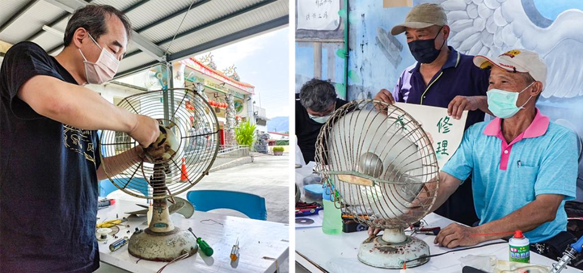 小家電診所的志工們,多數是已退休的前輩,資深維修志工吳煥然指出,偏鄉居民比較節儉惜舊,他修過很多傳承三代以上的大同電扇,也常接到40年以上的傳統卡式錄放收音機,看著送修者抱著自己熟悉的小家電愉快地回家,心中也獲得滿足與快樂。