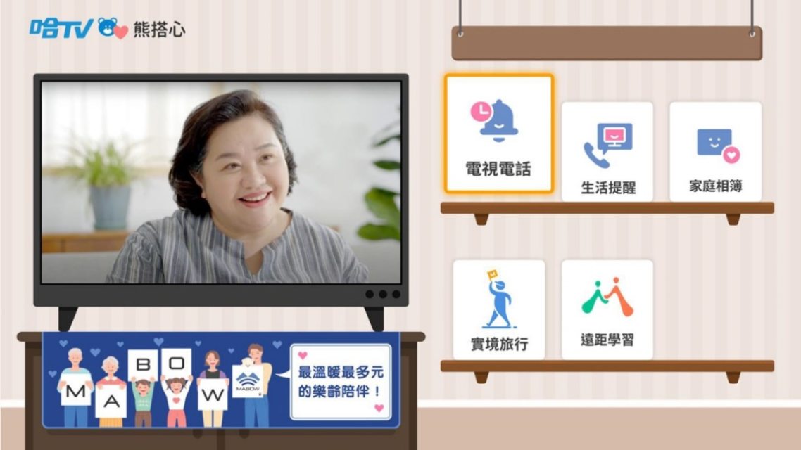 根據國發會推估,台灣在2025年即將邁入「超高齡社會」,因此推動高齡科技產業服務與應用,成為近年熱門領域之一;台數科與瑪帛科技共同合作,選擇將服務樂齡族群的產品導入到長者日常最常使用的電視中,從數位機上盒建置居家樂齡的服務,推出長者能快速上手的「熊搭心」(原名:樂齡陪伴)專區。
