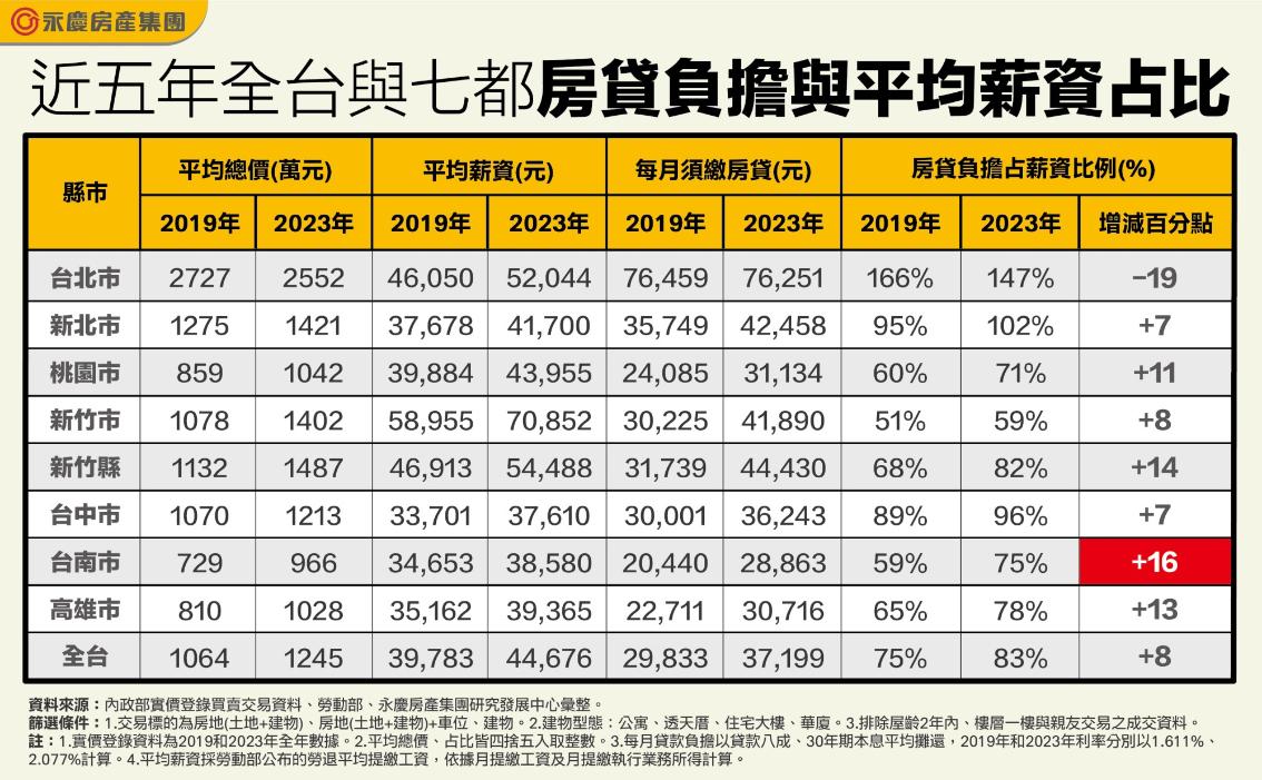 台南市5年間房貸負擔占比增加16個百分點最高! 新竹縣緊追在後