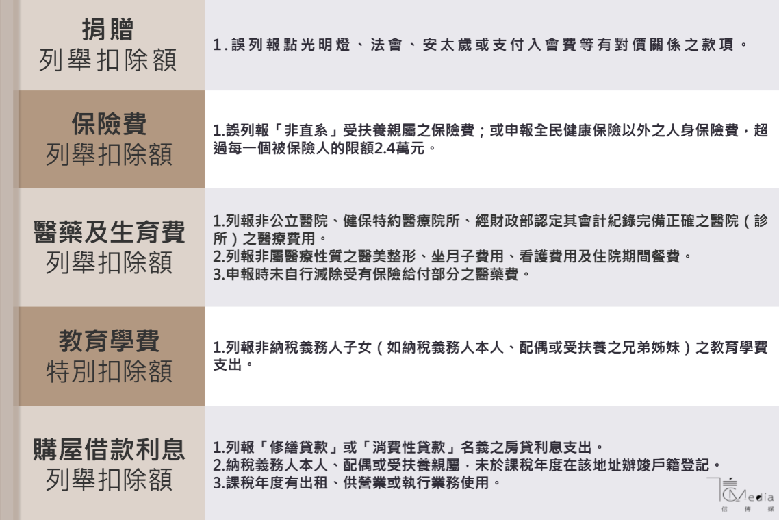 為避免納稅義務人申報錯誤導致遭補稅處罰,台北國稅局針對免稅額、所得稅額、扣除額、網路申報等4種常見錯誤,提醒民眾要多加注意。