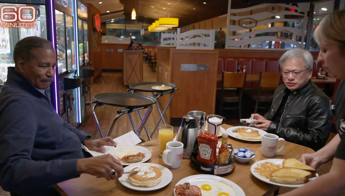 節目也安排兩位到加州聖荷西(San Jose)的連鎖餐廳Denny’s用餐,Denny’s除了是黃仁勳15歲開始的第一份工作外;他1990年從史丹佛大學取得電子工程學碩士學位後,進入電子公司工作,當時他常和兩位朋友,馬拉科夫斯基(Chris Malachowsky)和普里姆(Curtis Priem)在矽谷聖荷西店裡談論著輝達的概念,最後1993年創辦了輝達。
