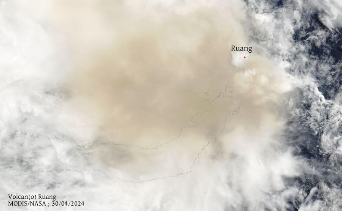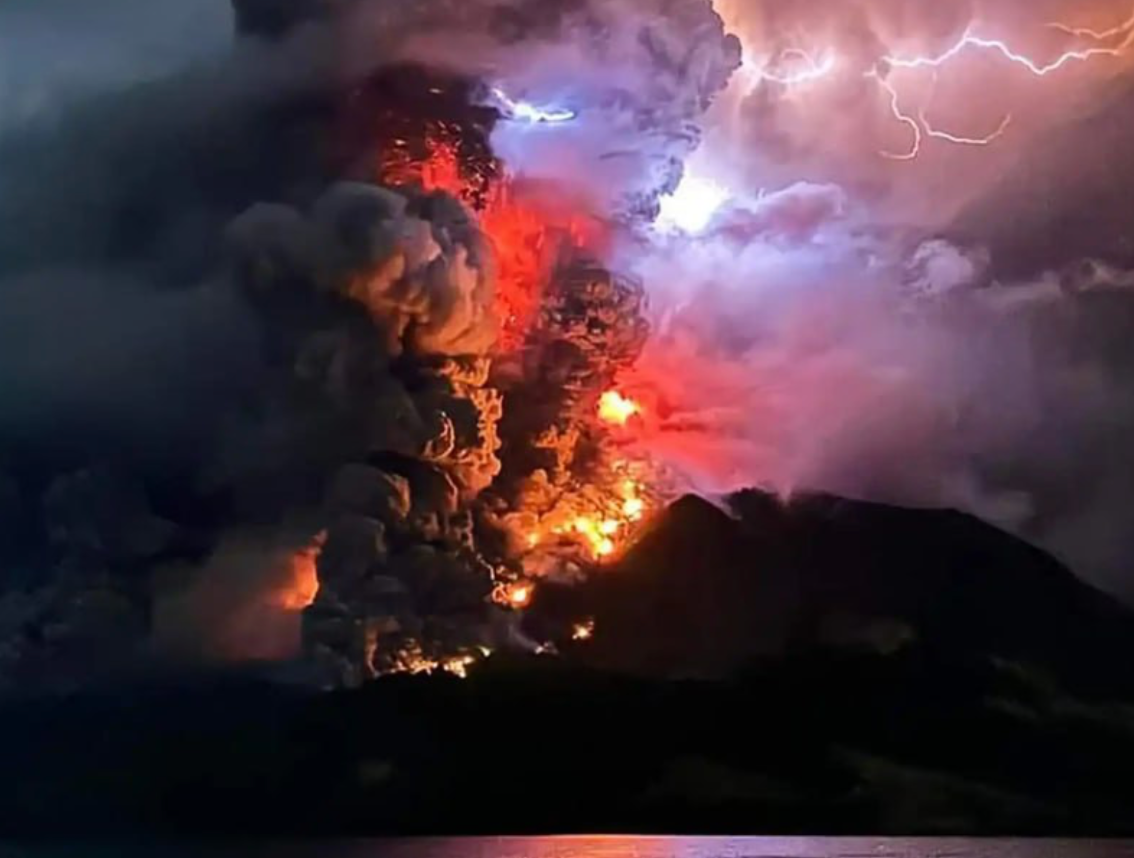 位於印尼北蘇拉威西省魯昂火山清晨爆發後,發生大規模火山爆發,噴煙19000公尺高,印尼火山學和地質災害緩解中心(PVMBG)將警報等級提高到最高第4集,並呼籲居民不要靠近火山。印尼防災機構表示,火山噴發柱高達5公里,半徑6公里內的居民應立即撤離,火山還有可能發生進一步的爆炸性噴發,並造成海嘯。
