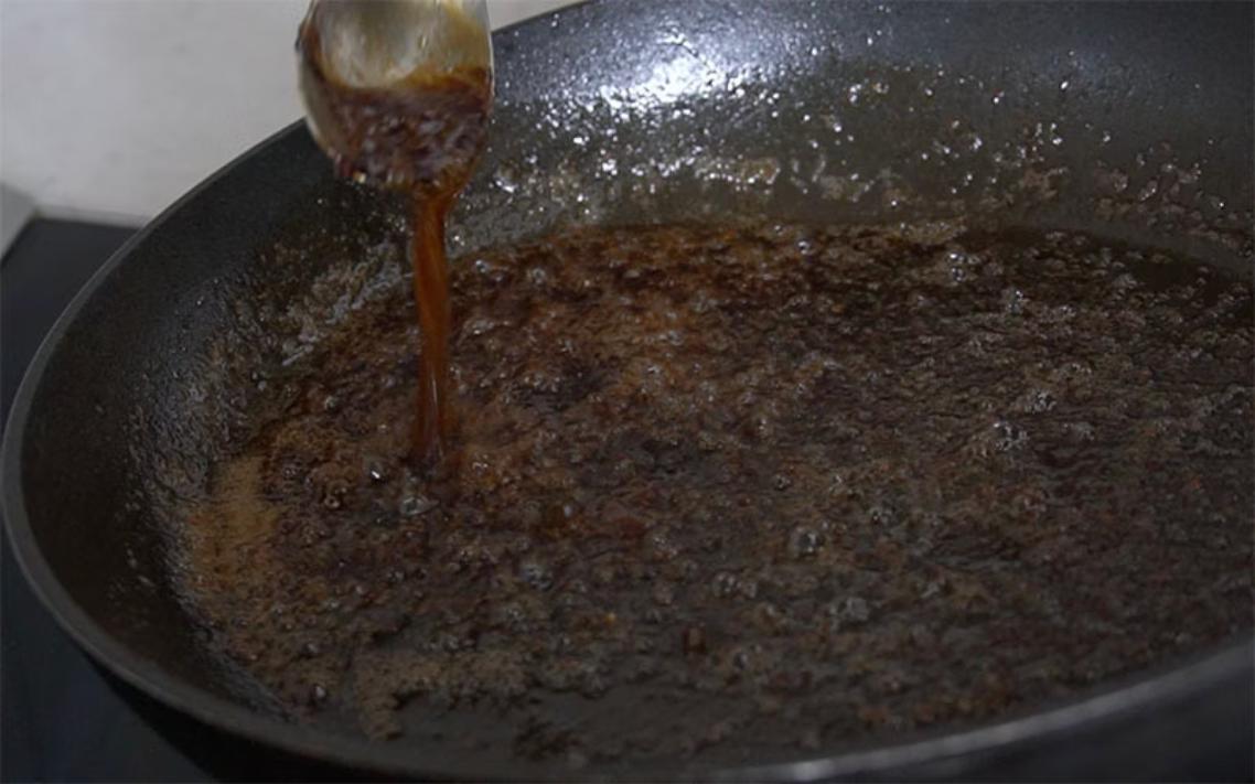 等鍋子稍微冷卻,利用這些豬油,再倒入日式醬汁做成將成。