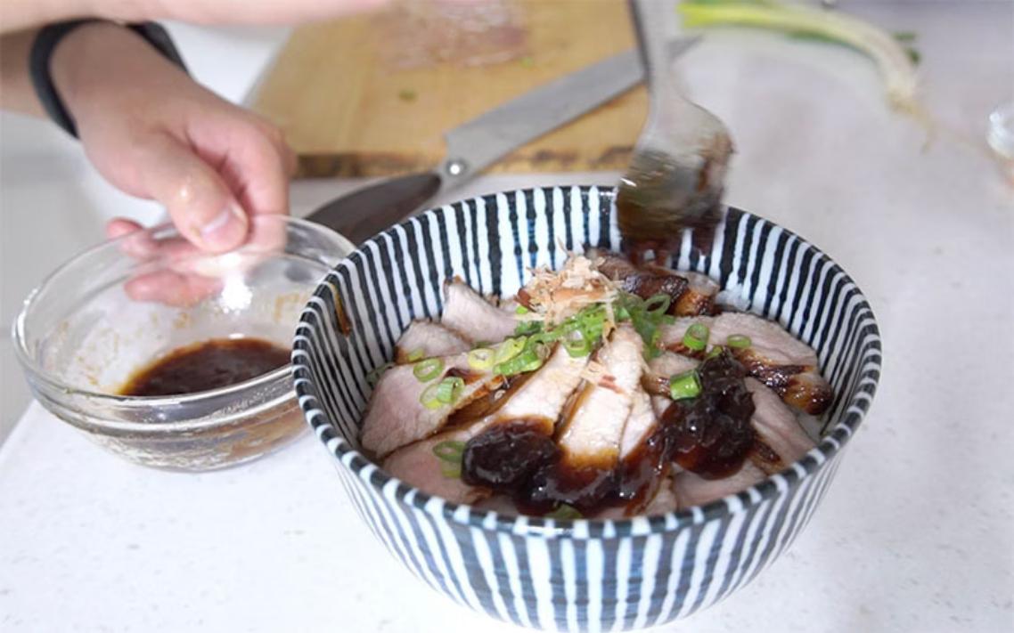 擺盤可以將肉片放射狀的擺放,上頭擺放上一些蔥花還有新鮮的柴魚片。
