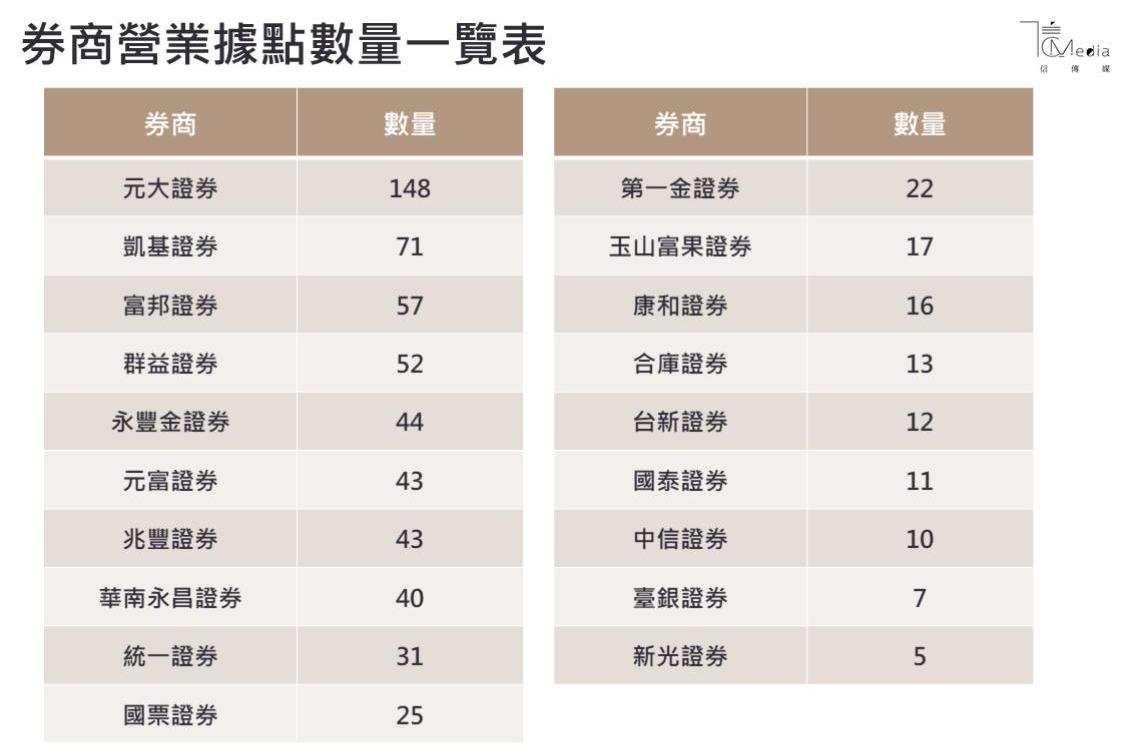 對股市新手來說,這時候就可以選擇營業據點較多的券商,不僅開戶好找,未來若有些事要臨櫃辦理,也不用大老遠跑一趟。