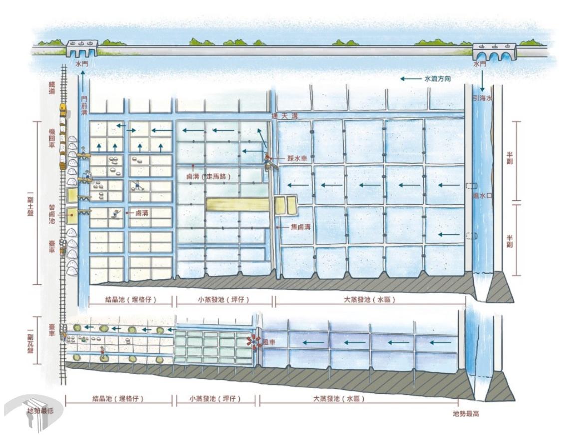 3.張復明、方俊育著,《臺灣的鹽業》,(臺北:遠足文化,2008),頁22-31。4.蔡昇璋,〈海陸之間:臺灣鹽業發展與新鹽灘開發—以臺南七股為例(1930-1970年代)〉,發表於臺南市政府文化局、南瀛國際人文社會科學研究中心主辦,「七屆南瀛研究國際學術研討會」(臺南:臺江文化中心臺江劇場,2023年10月21-22日)。