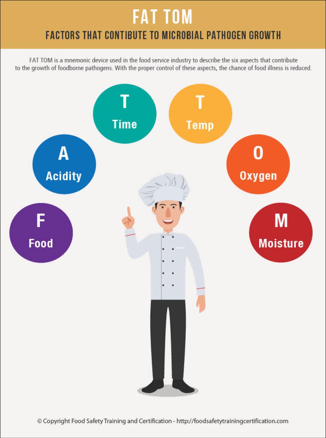 然而還有很多小型的食品業者,一般而言每日不會服務超過1千人的,很難強制實施HACCP,就用簡易的HACCP方法,簡單來講,就是FAT TOM & FIFO 這10個英文字母組成的食安管制原則。