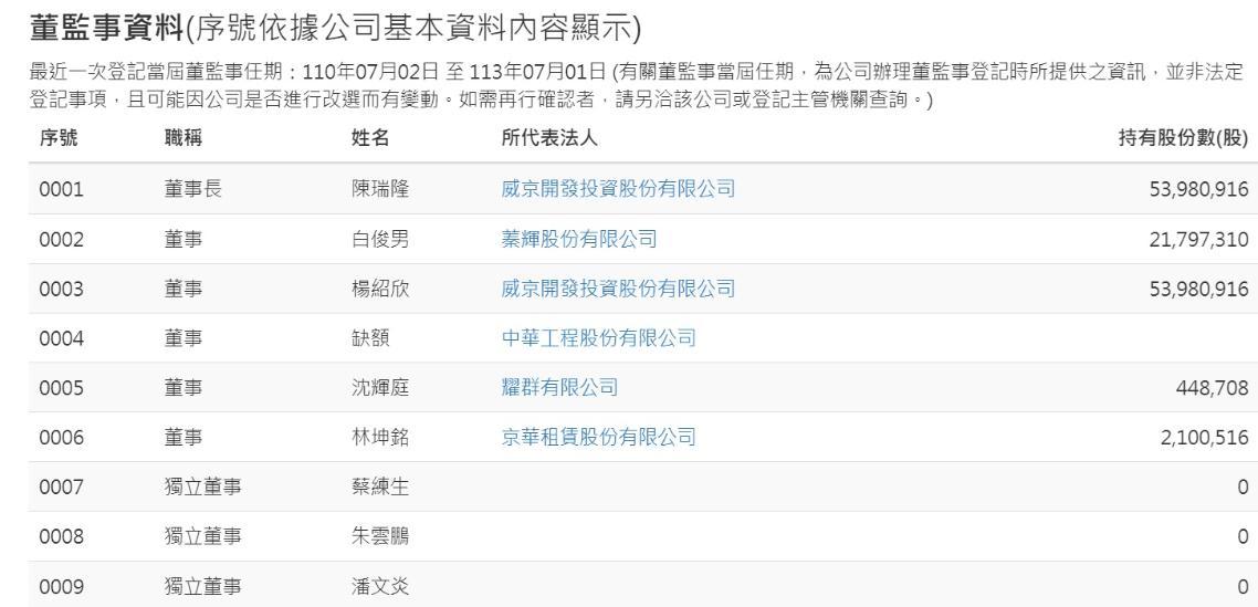 目前中石化董事會中威京開發投資佔2席,耀群有限公司、中華工程、蓁輝股份有限公司、京華租賃公司各占1席,合計6席董事,獨立董事有蔡練生、朱雲鵬、潘文炎,改選後除現任董事以外,獨立董事增加為4席(因董事長、總經理兼任需多設1席獨董),將成為蔡練生、陳美伶、邱佳瑜、盧遠珊,盧為東吳大學法學院兼任副教授、金典法律事務所顧問。