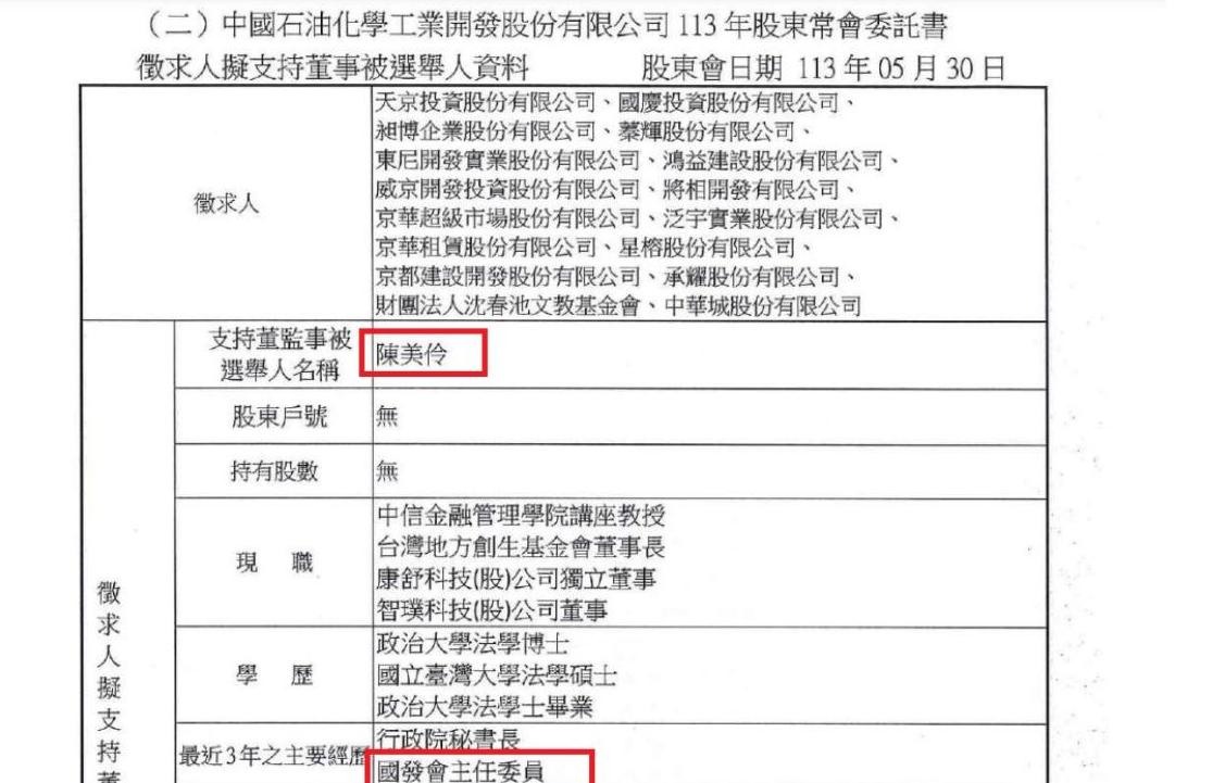 中石化獨董提名見台南派,陳美伶、邱佳瑜被委託書支持