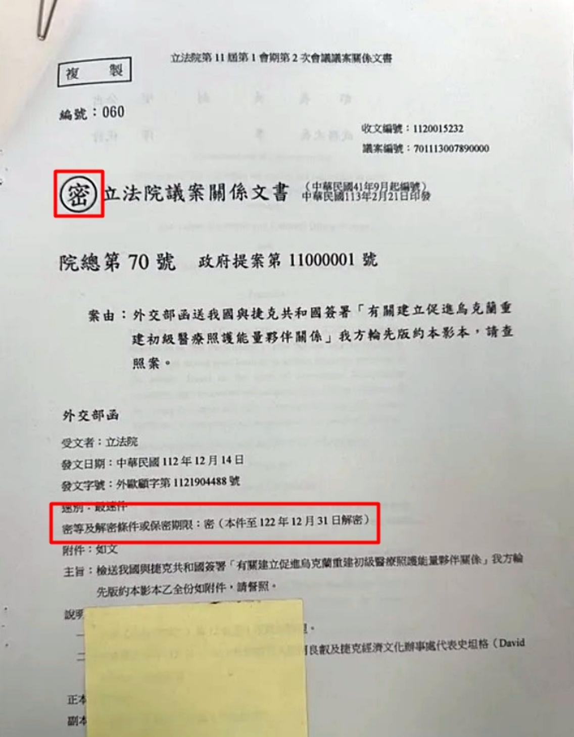 俄烏戰爭持續開打,我外交部透過捷克對烏克蘭進行專案援助,但遭國民黨立委徐巧芯公布機密文件,質疑外交部藉此豢養捷克當地的「政治金主」。