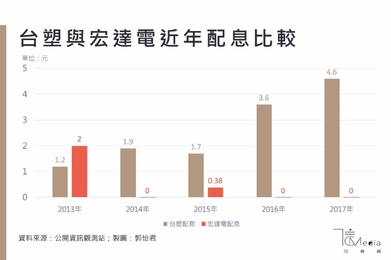 4年來,台塑貢獻股息勝宏達電