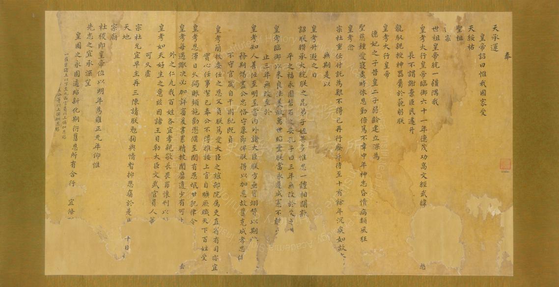 事實上,康熙遺詔並非完全由康熙帝本人主導,只有部分內容源自康熙 56 年(1717)的面諭。康熙帝在生了一場大病後,曾向皇子們與諸王大臣交代遺詔內容,主要替傳統帝制天下、大清帝國統治的正當性辯護,也為自己的文治武功做歷史定位。
