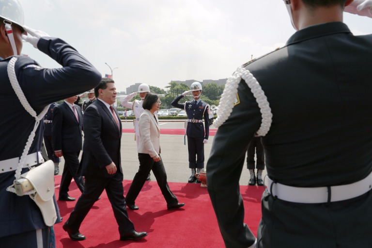 巴拉圭總統卡提斯抵台展開為期3天的訪問,12日在總統府前廣場致詞時,除談及台巴關係外,還用西班牙文提了3遍「蔣介石」,但外交部口譯卻在翻譯時,一律略過「蔣介石」3個字,引發些許批判,外交部方面則承諾,後續將檢討改進。而究竟卡提斯想說什麼呢?其實,卡提斯說的是,巴拉圭人與台灣人一樣重情義,對於歷史上捍衛國家尊嚴的先烈與愛國人士「像蔣介石」,均感念在心不敢遺忘,特此對中華民國諸多偉人先進,表達崇高敬意。