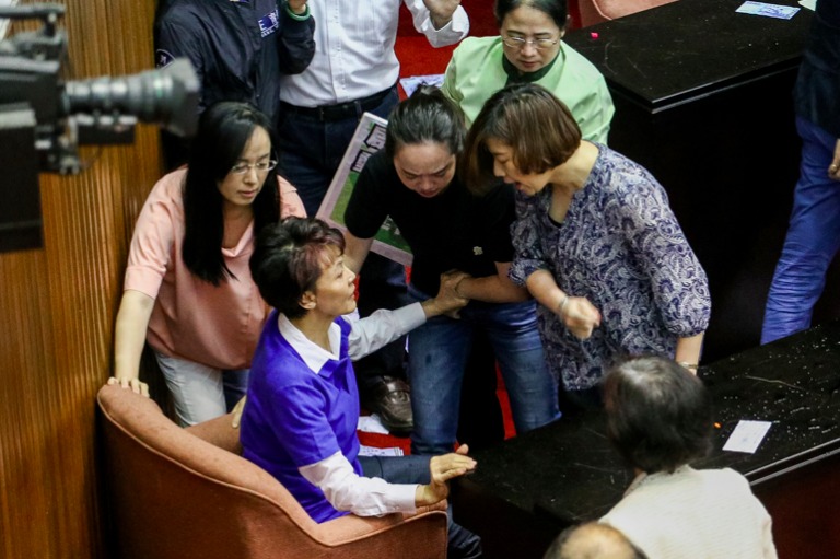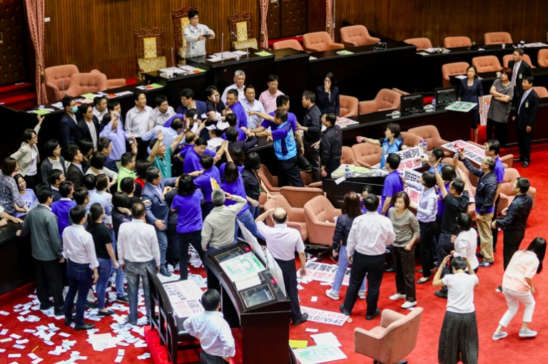 國民黨為了阻止林全上台報告,藍綠兩黨委員大打出手,場面混亂使得議事停擺。