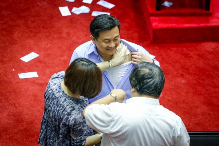 由於上午場面混亂,立法院長蘇嘉全宣布會議休息,並召集協商,但國民黨缺席協商。最後蘇嘉全在中午宣布重新開會,宣布直接將前瞻預算案交付財政委員會審查,引起國民黨委員不滿,並朝主席台潑水、丟擲紙張、水球等,而民進黨委員則高舉手牌阻擋投擲物,保護蘇嘉全。在藍綠演出的衝突劇中,4年4200億元的前瞻計畫預算案形同已經過了一半,當立法院限縮自己的權限成為立法局,最高民意機關的立委們選前說好「盯緊人民荷包」的承諾,哪裡去了呢?