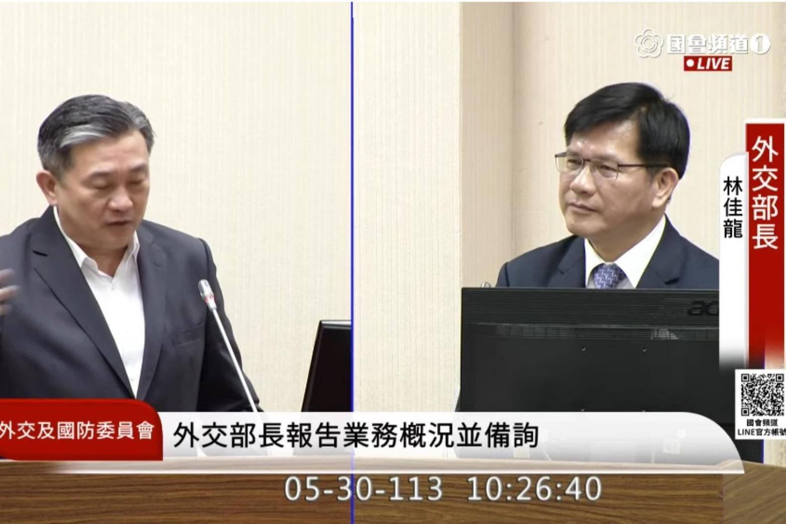 外交部長林佳龍今(30)日首度前往立法院外交及國防委員會進行業務報告及備詢,邦交國PLUS計畫、替代役男販毒遭美國逮捕、參加CPTPP為備詢三大重點,國民黨立委馬文君還邀請林佳龍一起登上太平島宣示主權。當然,也有國民黨立委趁機質詢國會調查權議題,以及砲轟前任外交部長吳釗燮。