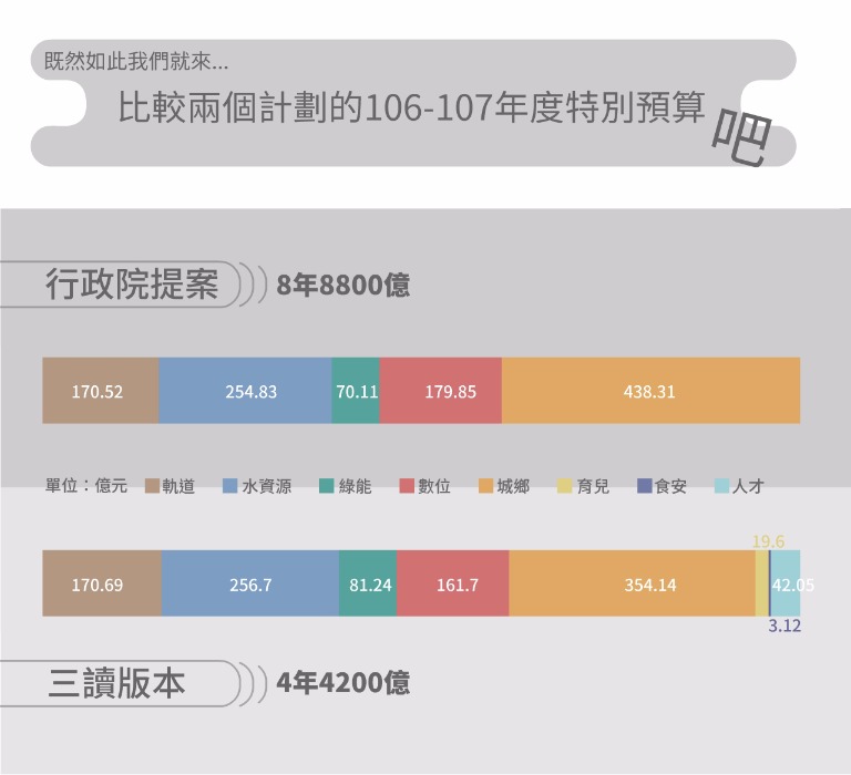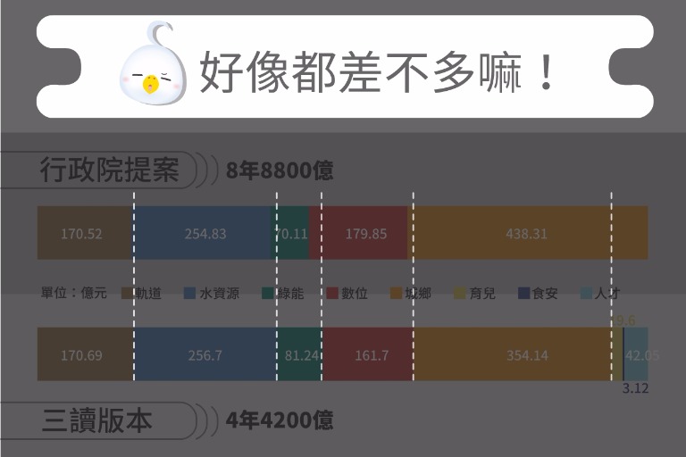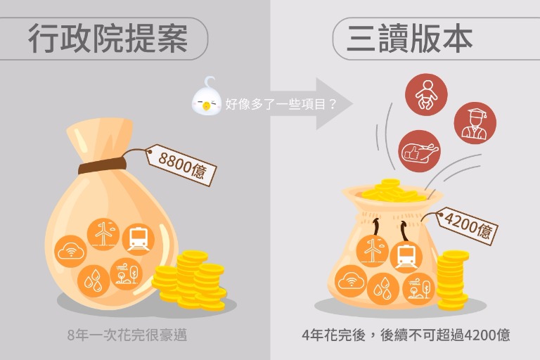 預算砍半後核訂通過,差別在哪裡呢?(美術設計/郭怡君)