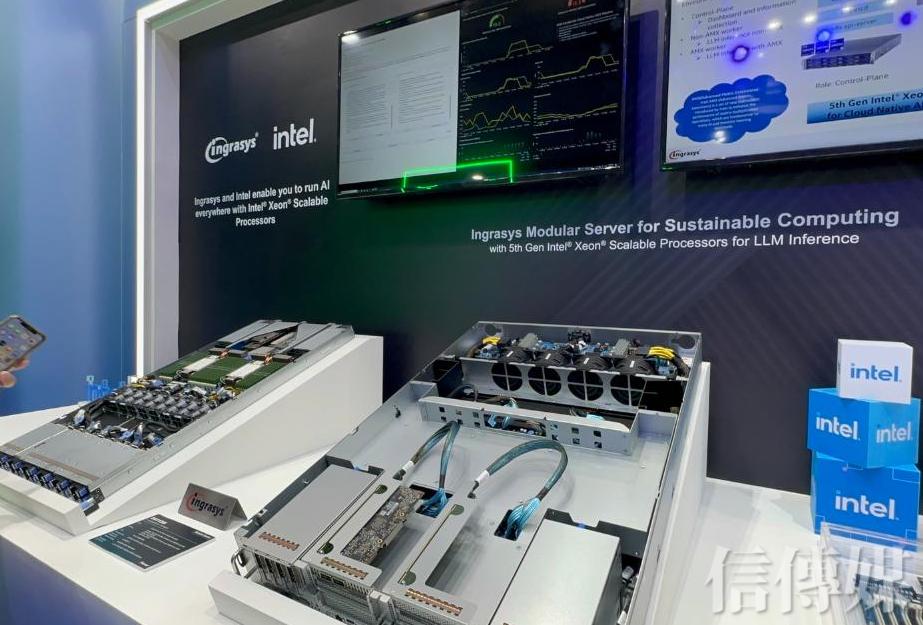 此外,鴻佰也祭出搭載 NVIDIA H200、B100 或 B200 圖像加速卡的最新 AI 加速器,其模組化架構可搭配氣冷或液冷系統,並支援 AMD Instinct MI300X 平台或 Intel Gaudi 3 加速器,提供客戶多元平台選擇。